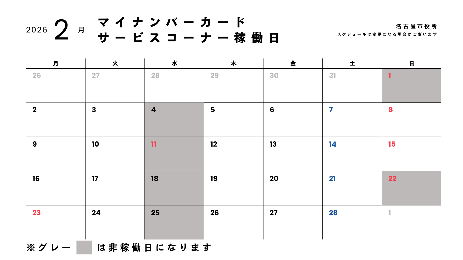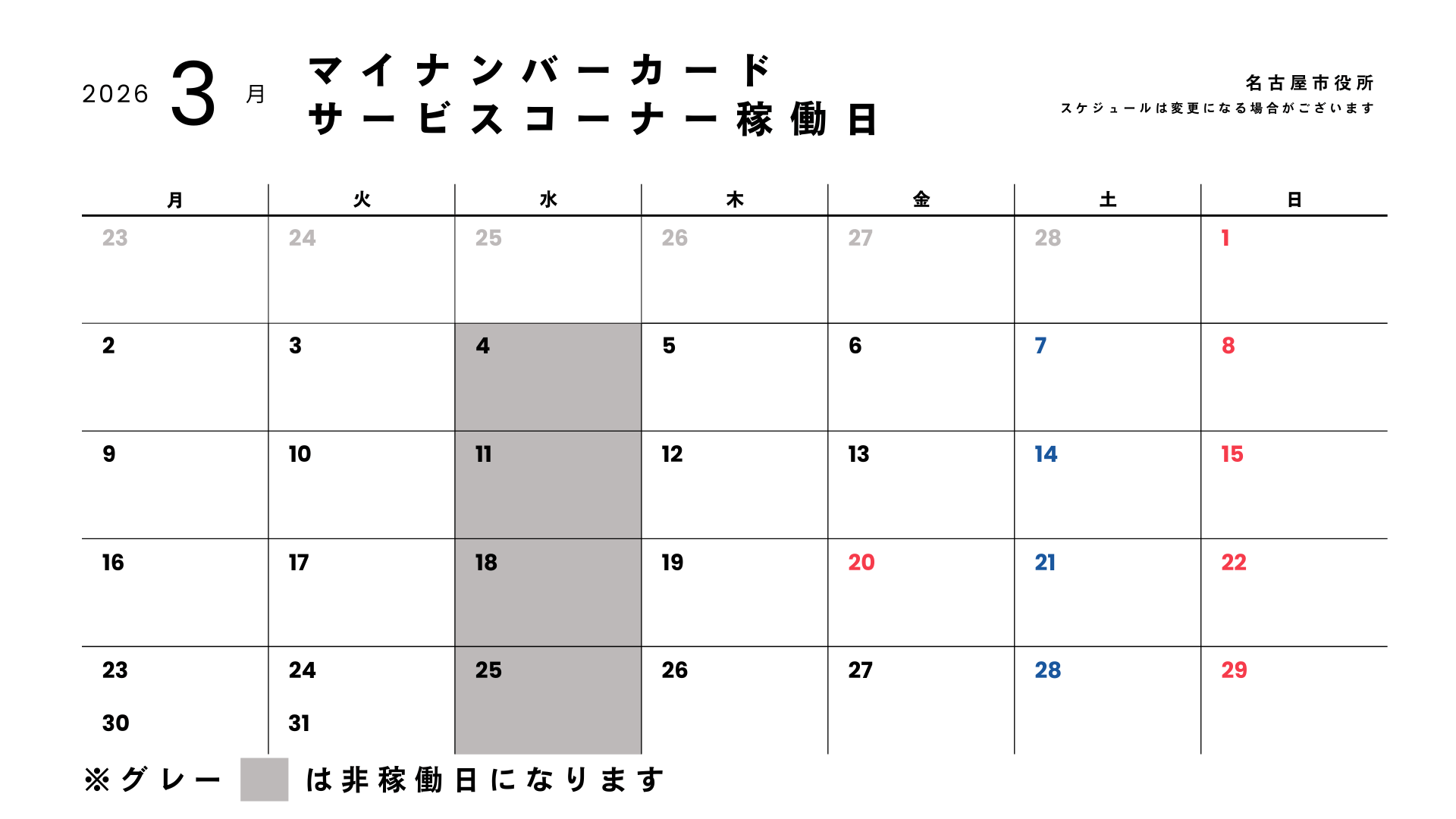 - マイナンバーカードサービスコーナー定休日(水曜日)